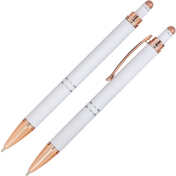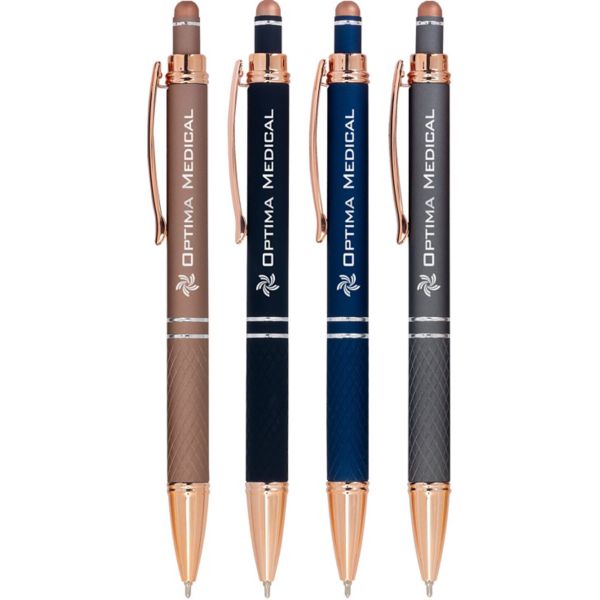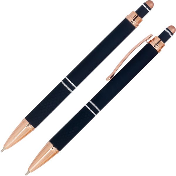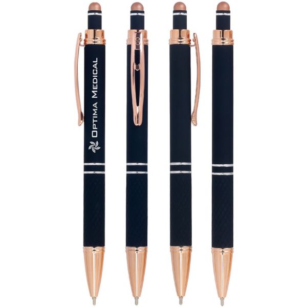 Highlights: Sleek metal design with elegant rose gold accents on clip and touchscreen stylus